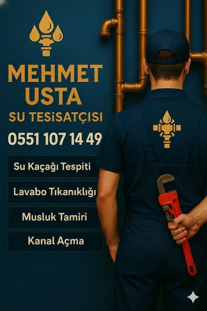 Mehmet Usta; Sarıçam'da su kaçağı tespiti, tıkanıklık açma, makineli petek temizliği, musluk-klozet-onarım, kombi bağlantıları ve acil su tesisatı hizmetleri sunmaktadır.